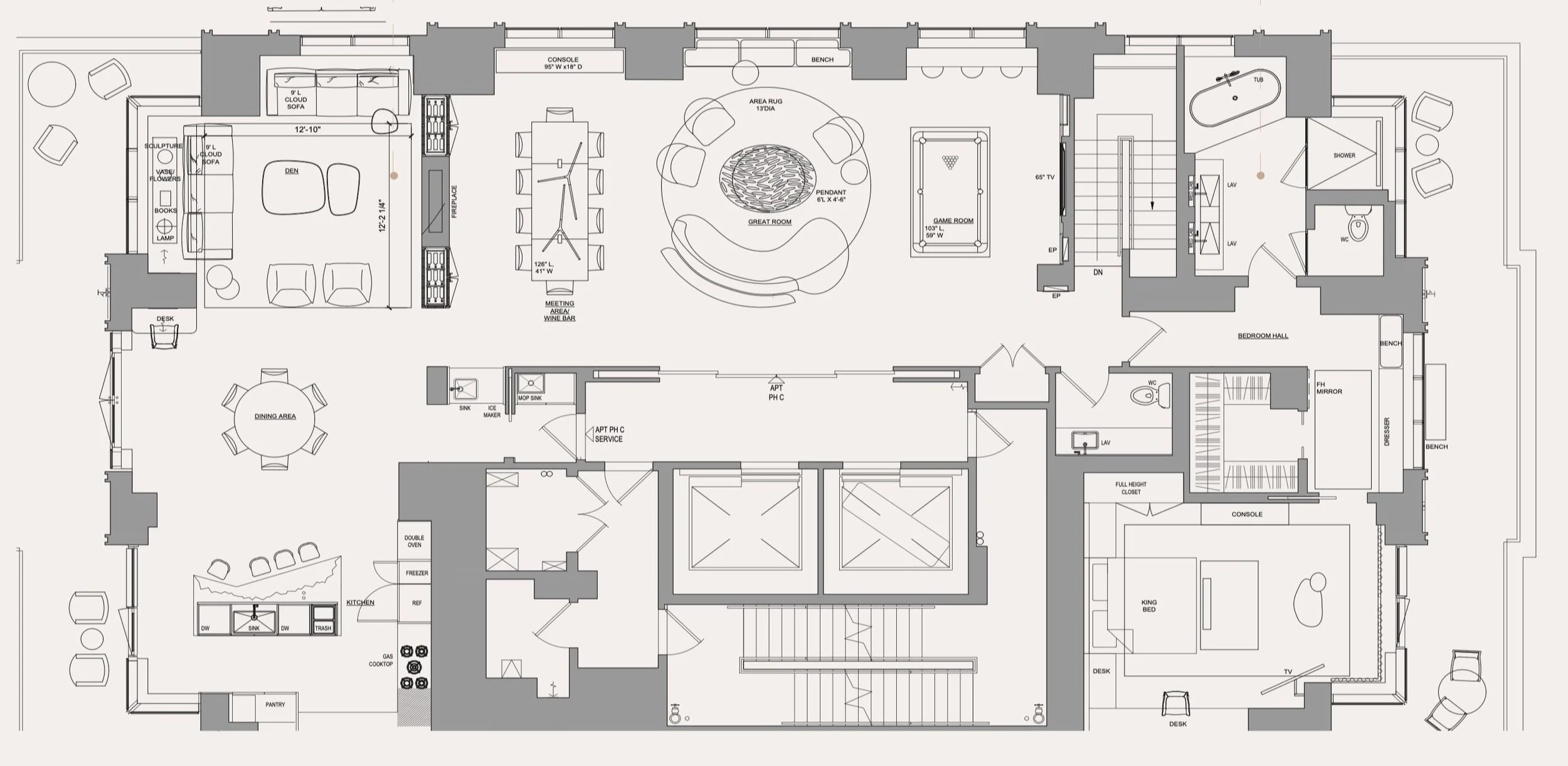 Located in Nomad, we reimagined this luxury penthouse by incorporating layers of sophistication with luxurious materials, textured elements, and bold fabrics. The design creates an ideal space where social, professional, and personal life can seamlessly coexist.