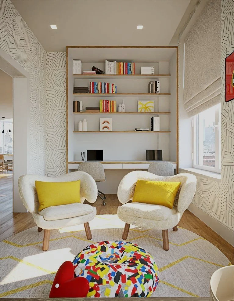 It was a pure delight bringing this apartment to life by layering elements of paint, wall covering, window treatment, bold lighting, custom furniture and millwork, we brought together warmth, comfortability and functionality into this wonderful space.