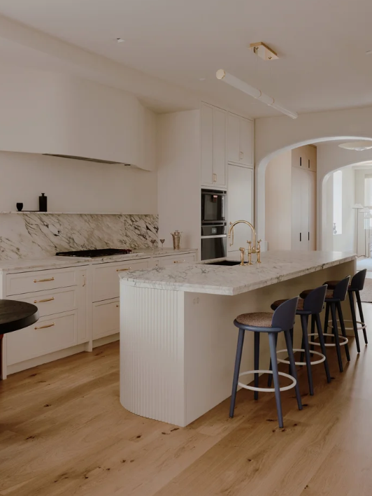 This four-bedroom apartment was designed as a vibrant yet refined family home, balancing modern aesthetics with everyday functionality. The kitchen serves as the heart of the home, featuring banquette seating thoughtfully designed for young children and daily use. A calm, neutral palette creates a cohesive backdrop, while carefully selected fabrics introduce subtle accent colors and warmth throughout the space.